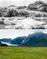The Pedersen Glacier in Alaska 100 years ago versus now