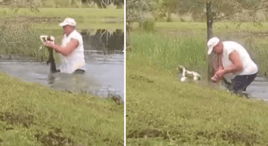 Man Jumps Into Water After Scary Alligator Snatches His Dog