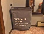 ‘The Wore It Once’ funny laundry bag is made from a quality fabric material, in ivory color, and measures 40cm long x 50cm tall x 40cm wide when fully standing up, is a perfect gift idea for your cheeky mates, or just a great way to organize your laundry day.