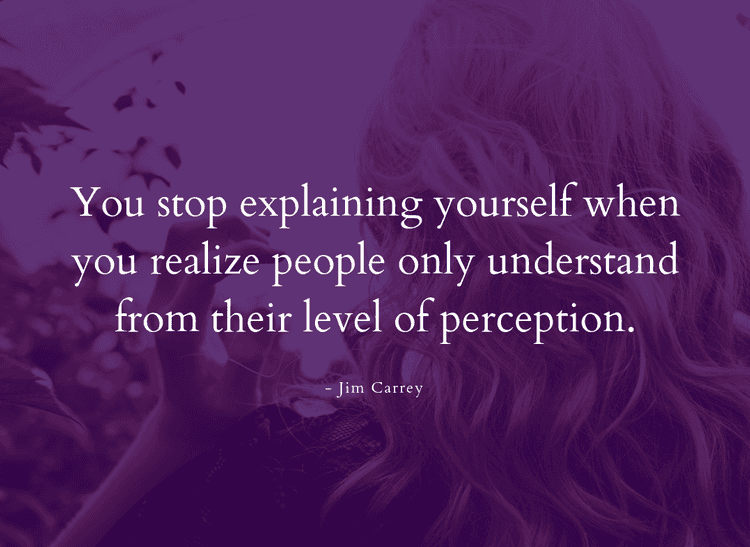 “You stop explaining your self when you realize people only understand from their level of perception,” – Jim Carrey.