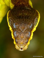 “Deflection might not work well for a caterpillar because the caterpillar probably won’t survive if any part of its body gets pierced or ripped off by an attacker,” explains eyespot expert Dr Thomas Hossie. “This defence is all about intimidating or startling an attacker who will run (or fly) away instead of risk a lethal encounter with a snake.”