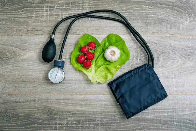 People with high blood pressure should also limit sodium in their diets because salt can increase blood pressure. High blood pressure increases risk of heart disease by placing more stress on the circulatory system. Healthy weight management through appropriate diet is one factor that can help lower high blood pressure.